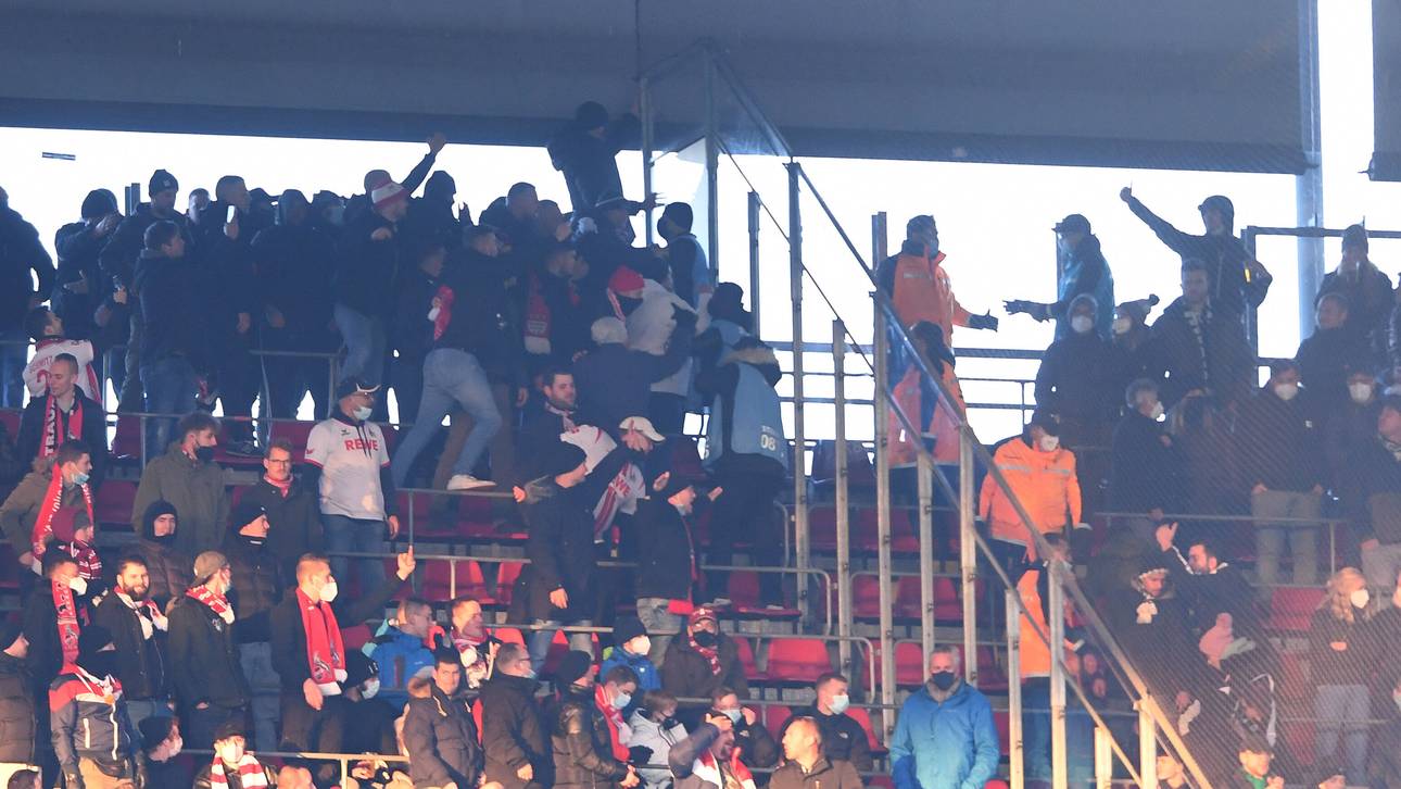 Vor Spielbeginn hatten anreisende Anhänger den Entlastungszug der Deutschen Bahn und eine Straßenbahn der Kölner Verkehrsbetriebe beschädigt.