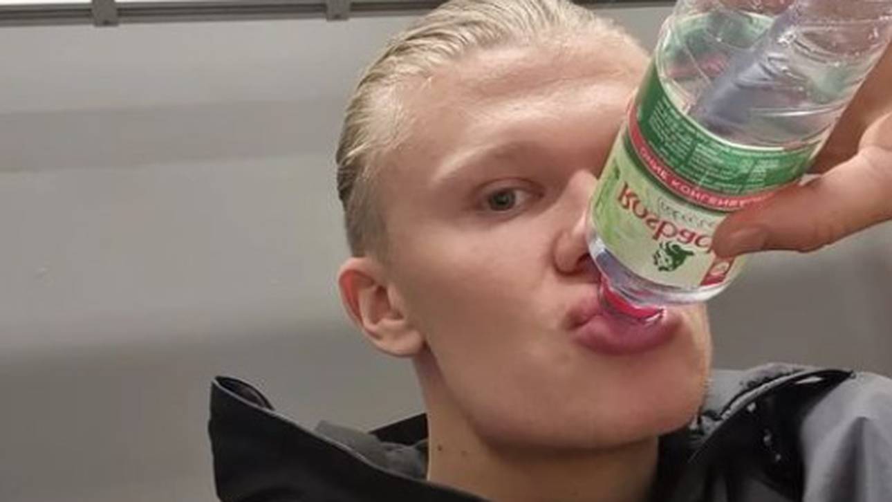 „Die fünfte Flasche“, schrieb Haaland zu einem zweiten Foto, auf dem klar wird, wie er das Problem lösen musste: trinken, trinken, trinken. (DATEN: Ergebnisse und Spielplan der Bundesliga)