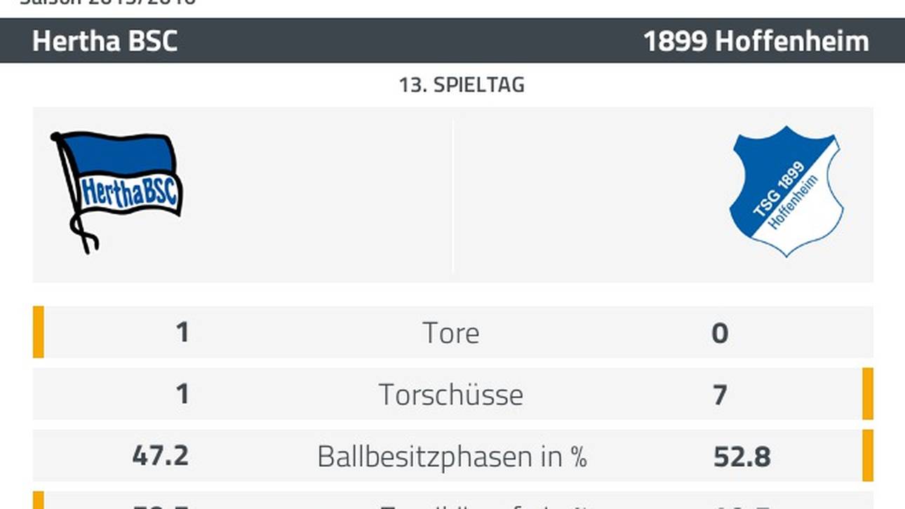 Die Berliner etablieren sich dagegen immer weiter in der Spitzengruppe der Liga und stehen als Vierter auf dem Champions-League-Qualifikationsplatz. Vor knapp einem Jahr hatte die Hertha gegen Hoffenheim noch 0:5 vor eigenem Publikum verloren. (SERVICE: Die Statistiken zum Spiel)