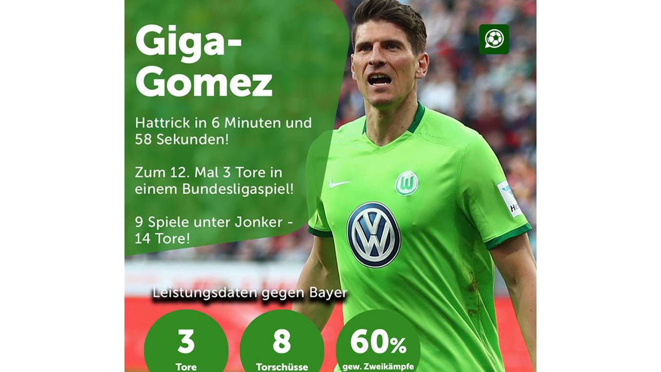 Der Torero ist endgültig beim VfL Wolfsburg angekommen. Mario Gomez erzielte gegen Bayer Leverkusen einen Hattrick – und den schnellsten Dreierpack in seiner Bundesliga-Karriere.